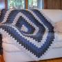 I decided to make a thick and cozy afghan that reflected the winter as well as the mountains. I found these gentle colors: off-white that represented the frequent overcast skies, blue the shade of the distant mountain ranges and grey to showcase the naked trees in the forest. This afghan is not only pleasing to eye, but also very thick and warm on an Appalachian winter evening.